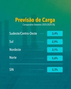 O boletim do Programa Mensal de Operação (PMO) para a semana operativa que vai de 08 a 14 de fevereiro traz um panorama de avanço de carga no Sistema Interligado Nacional (SIN) e em todos os subsistemas, em comparação com o mesmo mês do ano anterior. O SIN apresenta uma alta de 3,3% (86.063 MWmed). O submercado Norte, novamente, tem o maior crescimento, com 5,6% (7.777 MWmed), seguido pelo Sudeste/Centro-Oeste, com 3,4% (48.681 MWmed). Já o Sul mostra uma expansão de 2,9% (16.025 MWmed) e o Nordeste 2,1% (13.580 MWmed).